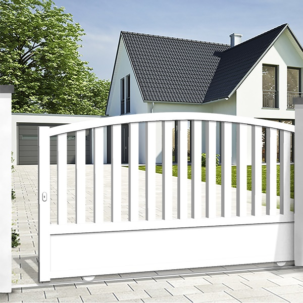 Este tipo de portão é adequado para entradas amplas, para acessos posicionados em subida ou para locais onde não existe espaço suficiente para manobrar dentro da propriedade para a abertura do portão de batente. O fator determinante a ser analisado para a escolha da motorização é o peso. Por conseguinte, deve ser observado o comprimento total da folha.
